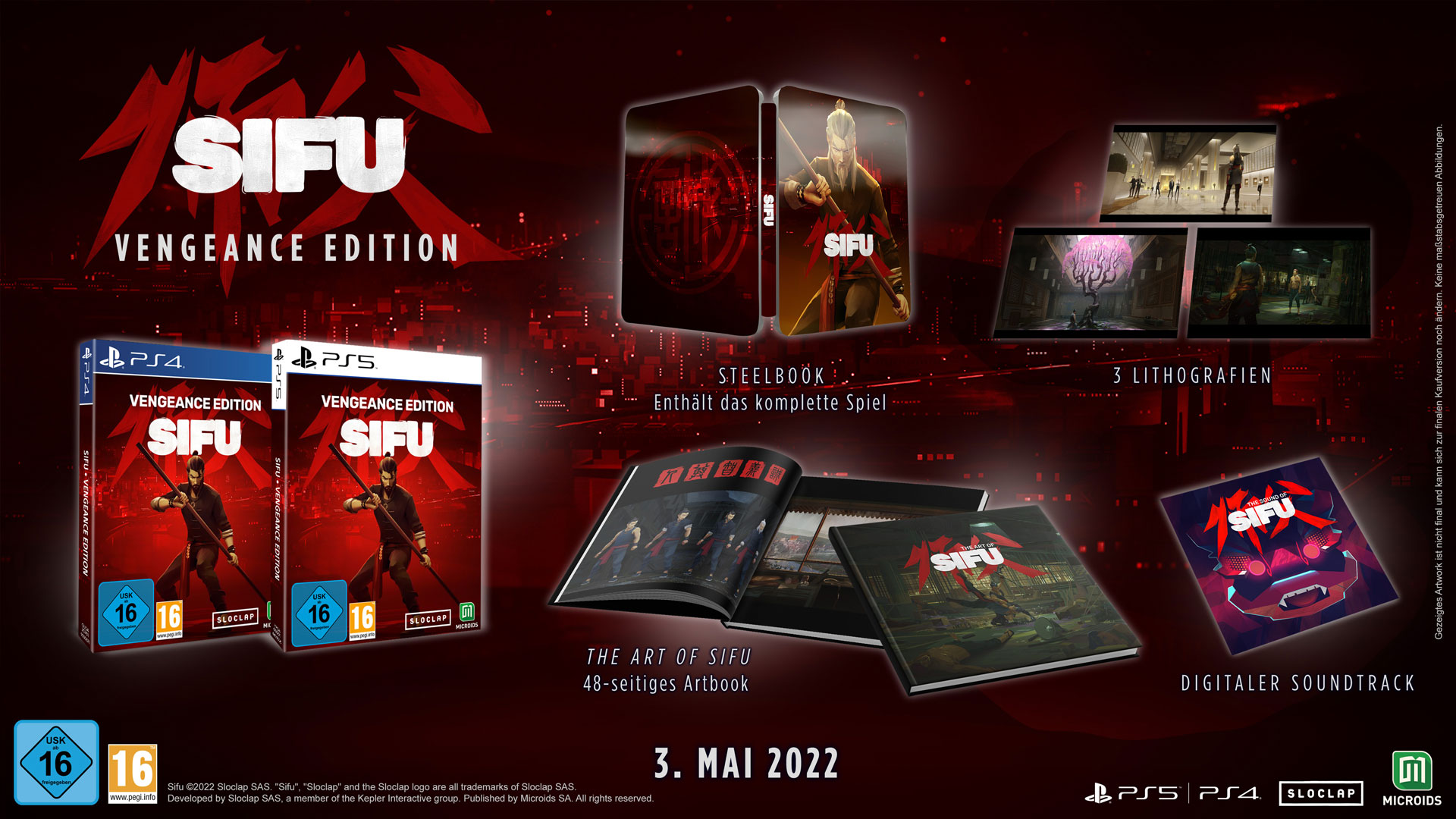 Düsseldorf, 3. Mai 2022 – Studio Sloclap und Publisher Microids freuen sich, bekannt zu geben, dass die Vengeance Edition von Sifu für PlayStation®5 und PlayStation®4 ab sofort im Handel erhältlich ist. Nach dem Multiplayer-Hit Absolver aus dem Jahr 2017 ist Sifu, das zweite Spiel von Sloclap, ein kunstvolles und kampfreiches Kung-Fu-Spiel, das sich mit den Themen Rache und Erlösung beschäftigt.