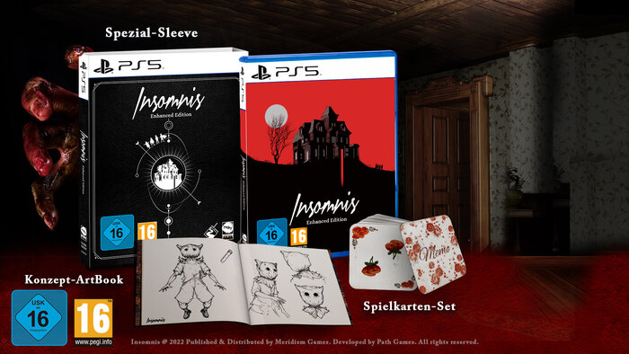 Die von Meridiem Games hergestellte und vertriebene Insomnis Enhanced Edition enthält einen Spezial-Sleeve, ein Konzept-ArtBook, in dem Spieler:innen mehr über die visuelle Konzeption und den kreativen Prozess des Spiels erfahren können, sowie ein Spielkarten-Set, das in keiner Horrorfansammlung fehlen darf. Für den Vertrieb in deutschsprachigen Ländern ist astragon Entertainment zuständig.