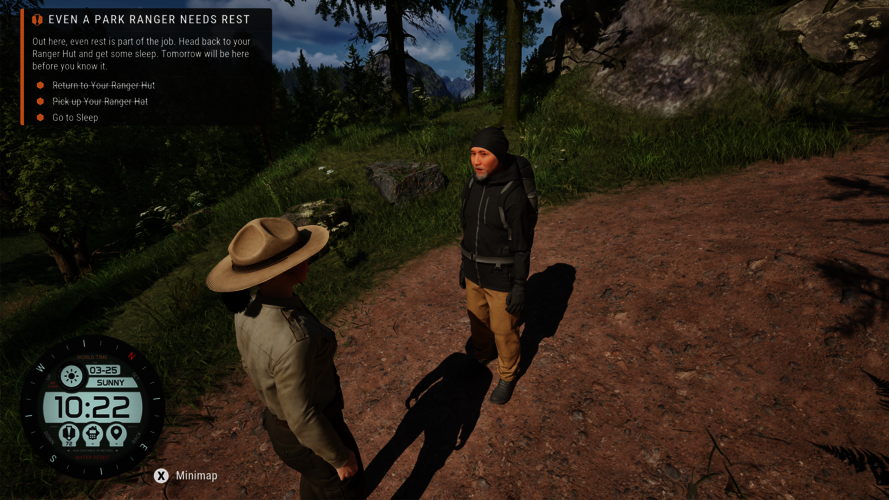 Du räumst blockierte Pfade frei, sammelst Abfall ein, reparierst kaputte Schilder - und lässt das alles bisweilen auch stehen und liegen, wenn ein Wildtier gesichtet wird oder Wanderer Hilfe brauchen. Jeder Tag hält neue Aufgaben und Überraschungen für dich bereit.
