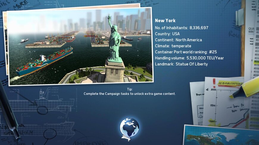- 55 detaillierte Häfen, davon 20 mit ikonischen Wahrzeichen